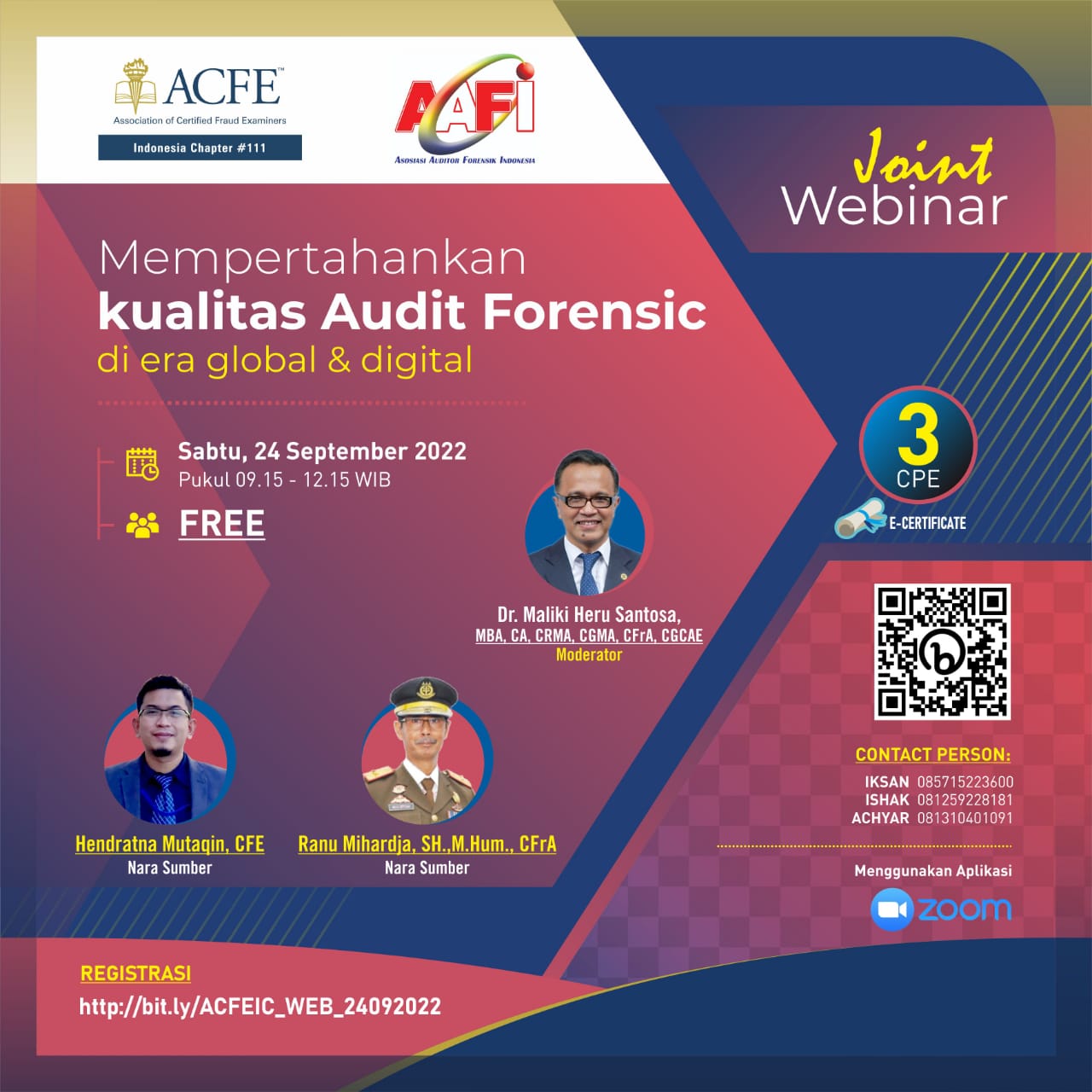 31 Jan 2025 AAFI PEKALEME Menyelenggarakan Webinar Audit Your Wellbeing: Strategies for Objectivity and Bias-Free Investigations Admin Nasional Posting at 31 Januari 2025